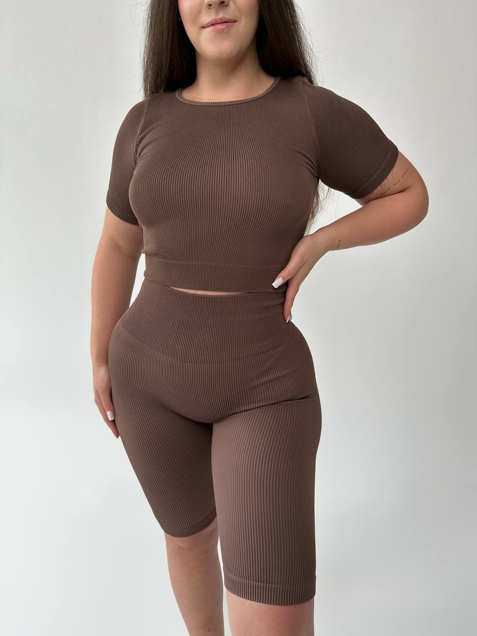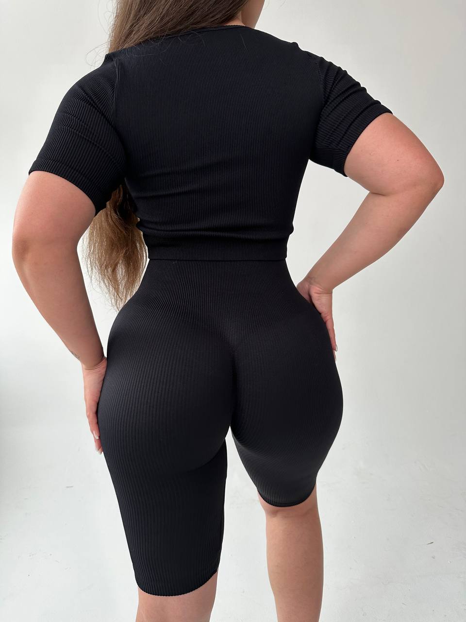 Велосипедки plus size з пуш-ап ефектом. Щільні, еластичні та дихаючі, вони підкреслюють силует, забезпечують комфорт і впевненість під час тренувань та у повсякденному стилі. Склад тканини (рубчик) – 96% поліамід, 4% еластан.